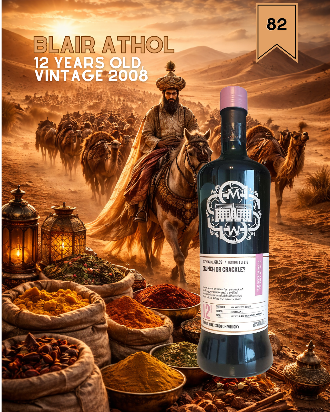 First things first: Distilled on 9 March 2012, this Blair Athol received a finish in a first fill Toasted Oak Barrique. For SMWS # 68.129 exactly 203 bottles were filled for the Whisky Wanderers Festival 2025 under the name “Luxury in a sultan’s tent”.