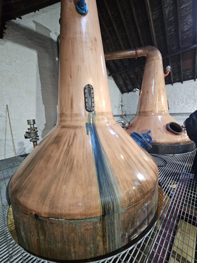 This was my fourth year partaking in the Stallions gathering, and every year we tour the distilleries. Since Springbank was not in production yet, laying the last hand on some things with the new and refurbished stills, we had to skip that distillery. We did however, visit Glengyle, which remains a perfect experience every time. One knows the story by heart, how the mill came from the Craigellachie Distillery in Speyside, while the stills were bought from Ben Wyvis, an obscure setup within the Invergordon Grain Distillery. Take a moment to think about the cunning Mr. Frank McHardy, who acquired these stills second-hand. Ben Wyvis produced malt whisky between 1965 and 1977 before that ceased. Those big pots stood there silently, until McHardy picked them up in the early 2000s for use in Campbeltown. The stills were too large for the plans, so they were “taken in”, as one could say, to reduce the size. The cuts are still visible. When you look at them closely, they are not all that different from the Springbank stills. Our tour guide for the day, Craig, kindly poured us some new make spirit to enjoy. It must be said, Kilkerran has one of the fruitiest new make spirits I have ever tasted. And I like tasting those spirits. Goof stuff!