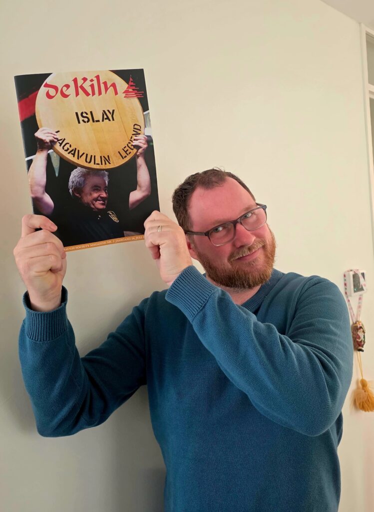 During the visit to Lagavulin, I was still an active reporter for the Dutch whisky magazine De Kiln, which I had previously headed as editor-in-chief. Some words about the visit ended up on paper. (See me pose with that particular magazine, featuring Pinkie.) My conclusion after all the celebrations was short and sweet: ‘Lagavulin still takes out the fire, but leaves in the warmth’, as it says on the label on every Lagavulin 16 years old.