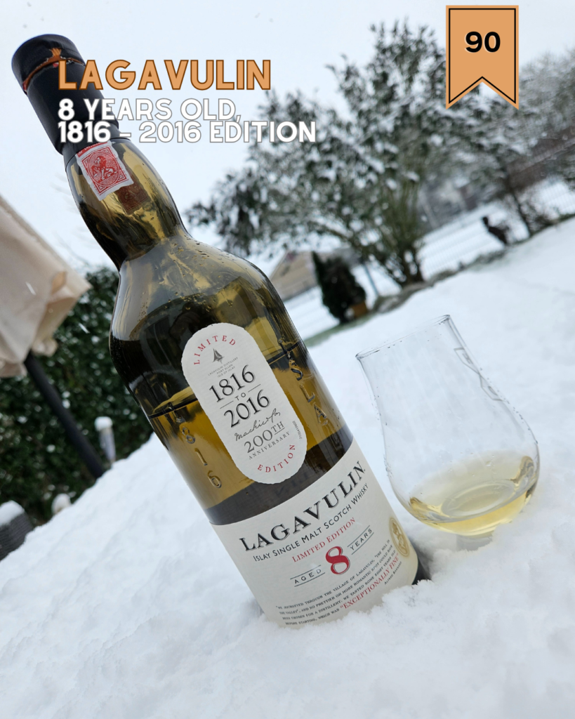 The bicentennial year was celebrated with an affordable 8 years old release, which also baffled the community, as these were the dark ages of NAS-bottlings. For instance, Ardbeg had celebrated their 200th anniversary with the Perpetuum, a rather unassuming and underwhelming NAS, which just as easily could have been an 8 years old. The Lagavulin 8 got a lot of appreciation, and for the occasion we will also taste this gem again today. To illustrate how the whisky market is cooling down in 2026, I acquired this anniversary edition for around 30 euro on auction.